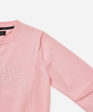 サタデーズの定番のスタンドミラーロゴ、背中に大きくスラッシュロゴを配した、クルーネック長袖ニットプルオーバー。